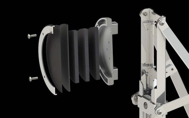 A parte posterior do pad de bumbo possui 10 aberturas de ventilação que dispersam o ar ao impacto do batedor. Isso proporciona uma excelente resposta dinâmica e uma simulação realista da sonoridade do bumbo em todos os níveis de velocidade.